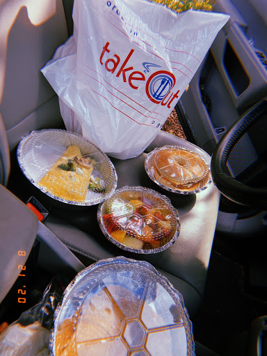 那么接下去去哪里呢?我想去附近的韩国超市买点菜,顺便在那里吃个饭。我是看好了拉面店,但是只提供午饭,所以还没有到点。那么就去PJ PANCAKE买了外卖,等的时候,我们去旁边的贝果店买了四个贝果。再回去问,外卖还没有好,我就开始有点不耐烦,说好了10分钟,根本不可能。何况一个只是贝果里夹店东西而已。我们去韩国超市里串了门。再去取外卖,还没有好,只能站在店里等着。否则不知道要拖到什么时候。终于拿到了,回到车上去吃。
